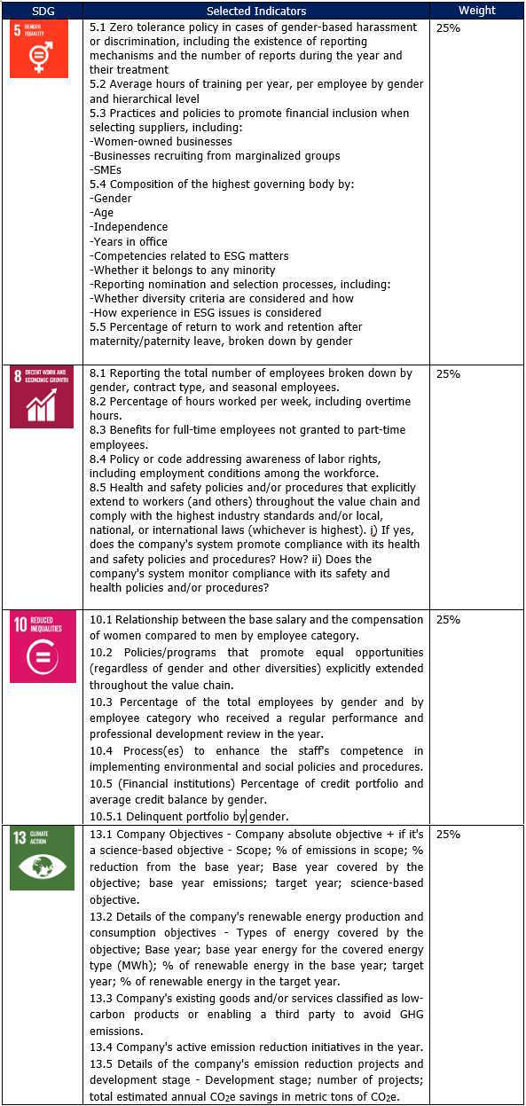 4. The definition and calculation of key performance indicators (KPI’s ESG) that allow monitoring the progress made.